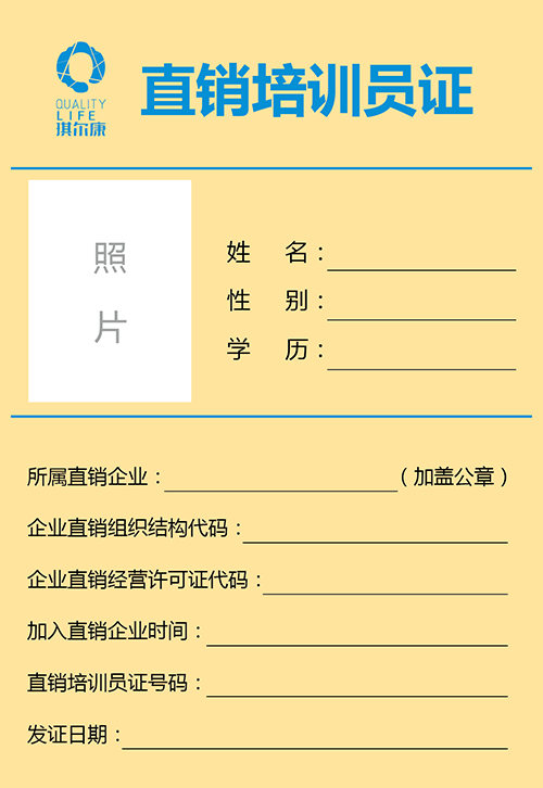 >直銷培訓員證樣本